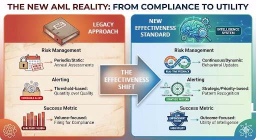 In plain English: Utility is the new Compliance. Regulators are now measuring the quality and “law enforcement value” of your Suspicious Activity Reports (SARs). A program that generates thousands of low-value alerts but misses patterns related to the 8 National Priorities is now considered an elevated regulatory risk.